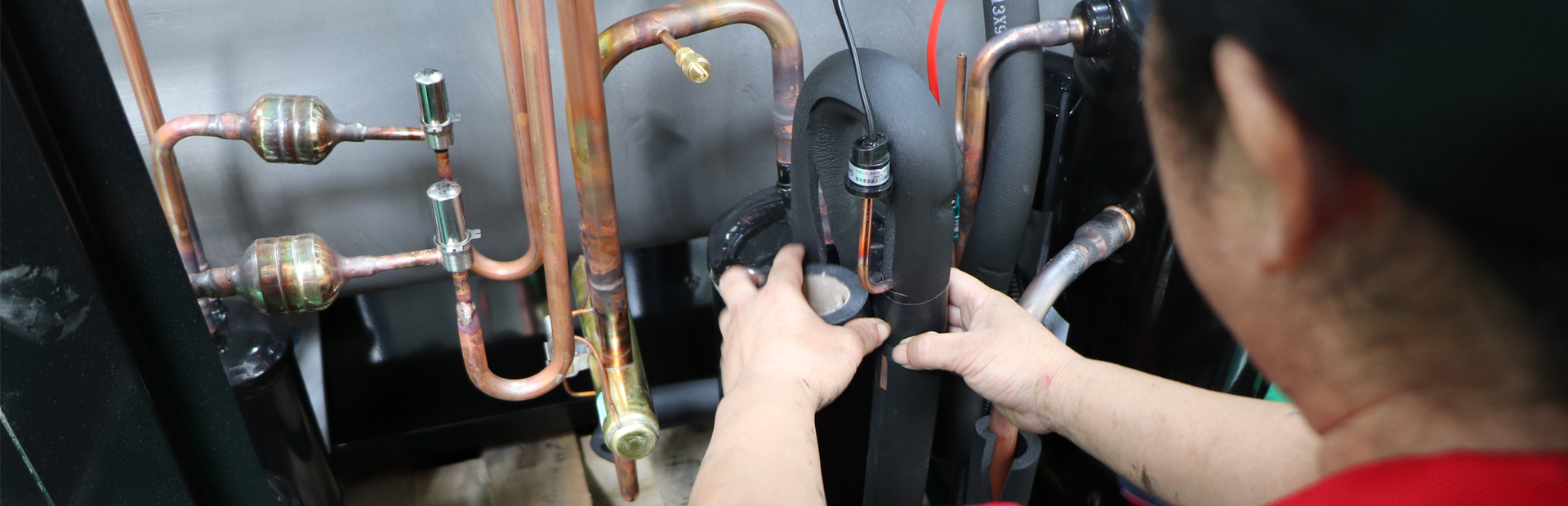 自主研發(fā)蒸發(fā)器,銅管厚度1.0mm,不沾塵,耐腐蝕,長效節(jié)能;自主研發(fā)冷凝器換熱效率高,不易結(jié)水垢,水流量大,不易堵塞。擁有自己的鈑金廠,品質(zhì)可靠,交期更快